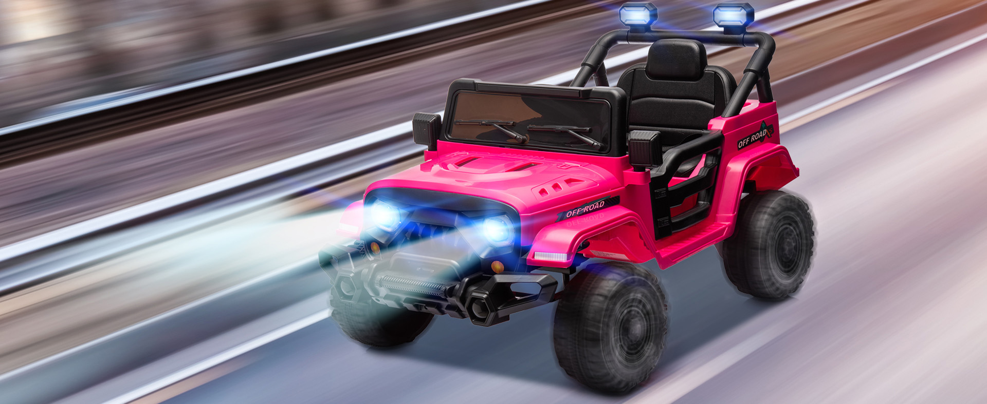 We customized this vehicle to perform with two 35W motors (with 3.5 mph max. speed) and a 12V battery (give 40-60 minutes of fun). Bluetooth technology and a USB port allows kids to connect smart devices which give jams of songs and entertainment. Also, we placed in a real horn and a engine starting sound to make the experience more surreal. This vehicle is designed aligning to our “Safety Upmost” policy with remote control capabilities to safely protect your child against any possible dangers. In addition, our slow start technology ensure gradual acceleration to prevent any sort of jolting that occurs on most ride-on cars.